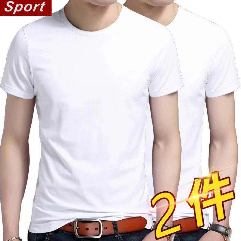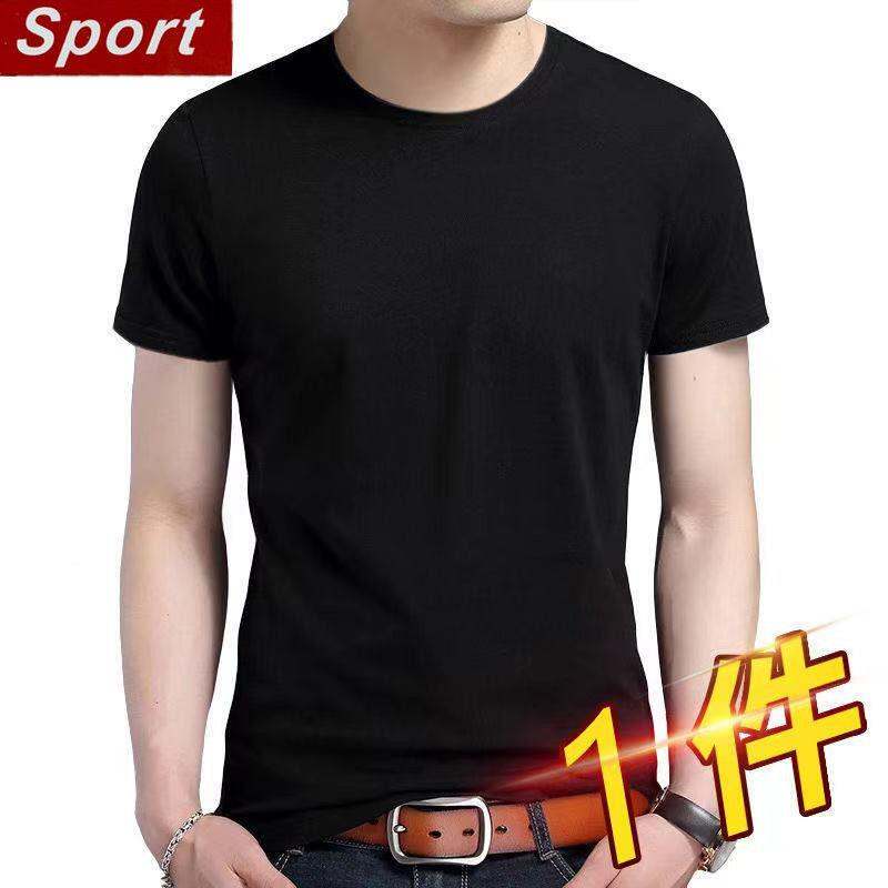 Summer Men's Short Korean Sleeve Sleeve Fwet Shirt Solid Color Version Half Flow Versatile Wide Large Size Loose round Neck Trendy Bottom Shirt for Men and Women