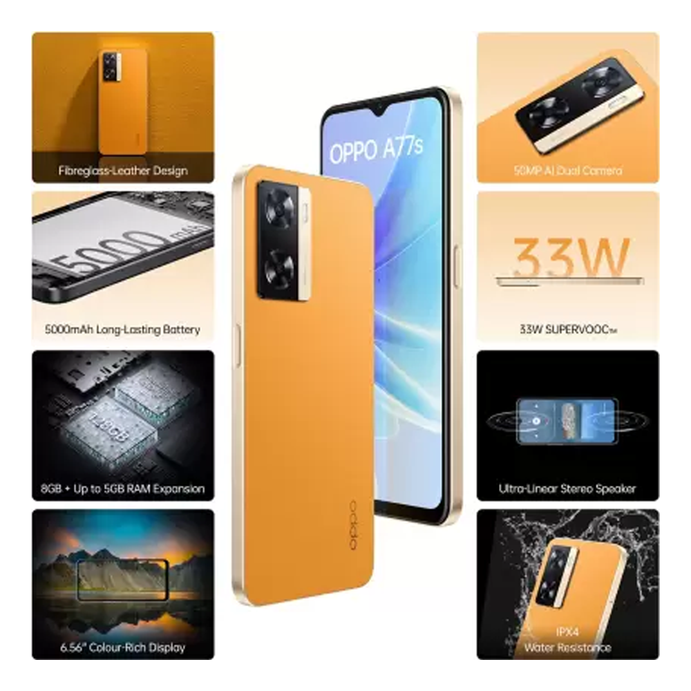 OPPO A77S 4G (8/128GB) : LOCAL SET : 2 YEARS WARRANTY : FREE GIFTS AVAILABLE (TEMPERGLASS, BACKCASE, WIRELESS NECKBAND, REDMI 10K POWERBANK, SELFIE STICK) : !!.