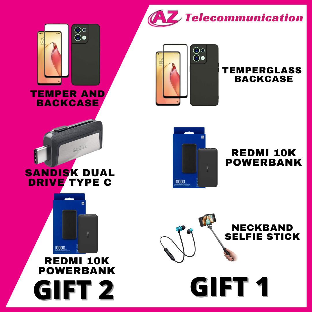 • FREE GIFT 1 : TEMPERGLASS, BACKCASE, WIRELESS NECKBAND, REDMI 10K POWERBANK, SELFIE STICK