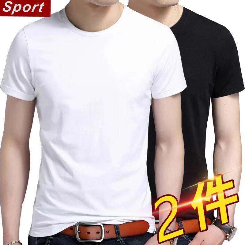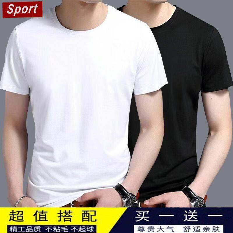 Summer Men's Short Korean Sleeve Sleeve Fwet Shirt Solid Color Version Half Flow Versatile Wide Large Size Loose round Neck Trendy Bottom Shirt for Men and Women