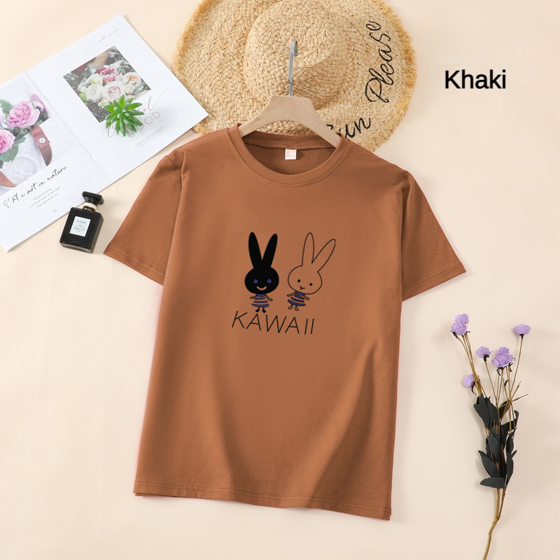 White T Shirt Women Elegant Short Sleeve T-shirts Cartoon Rabbit Printing O-Neck T-shirt Lightweight Ladies T-shirts
