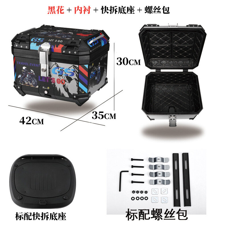 ABS Tail Box 45l Large Capacity Motorcycle Scooter Electric Vehicle Toolbox Quick Release Large Non-Aluminum Alloy Tail Box