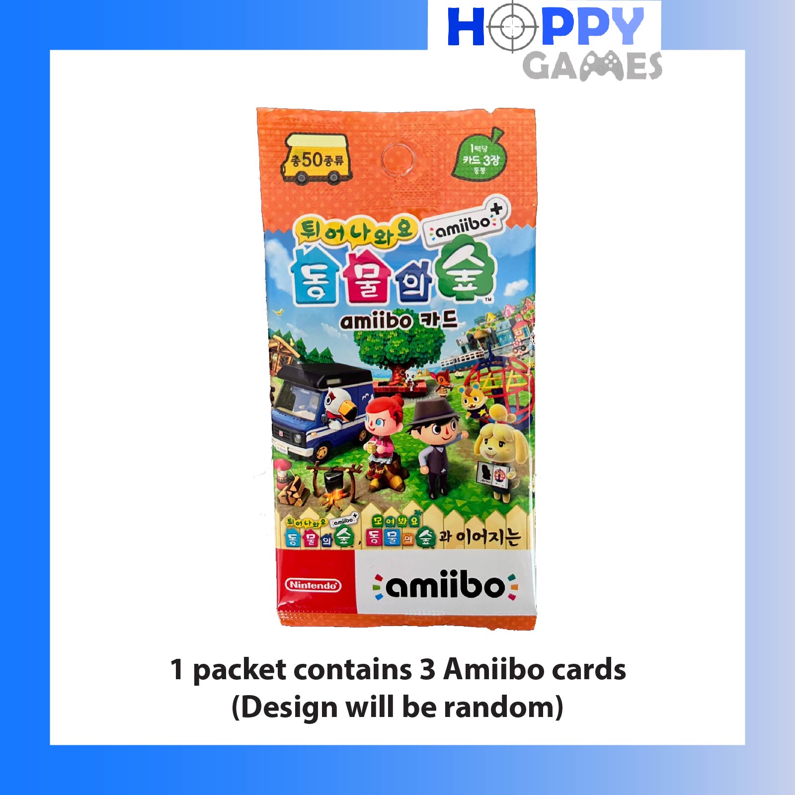Please choose Game+Amiibo option if u wish to get the Animal Crossing and Welcome Leaf Amiibo Series cards. Amiibo cards come in Korean packaging, with Korean words. Amiibo can still be used normally inside the game and does not affect the language of your gameplay. 1 pack contains 3 Amiibo cards (random design). Total of 50 designs. All cards are packed inside card and unable to choose designs. Refer to designs on https://animal-crossing.com/amiibo/collections/new-leaf-amiibo-cards/